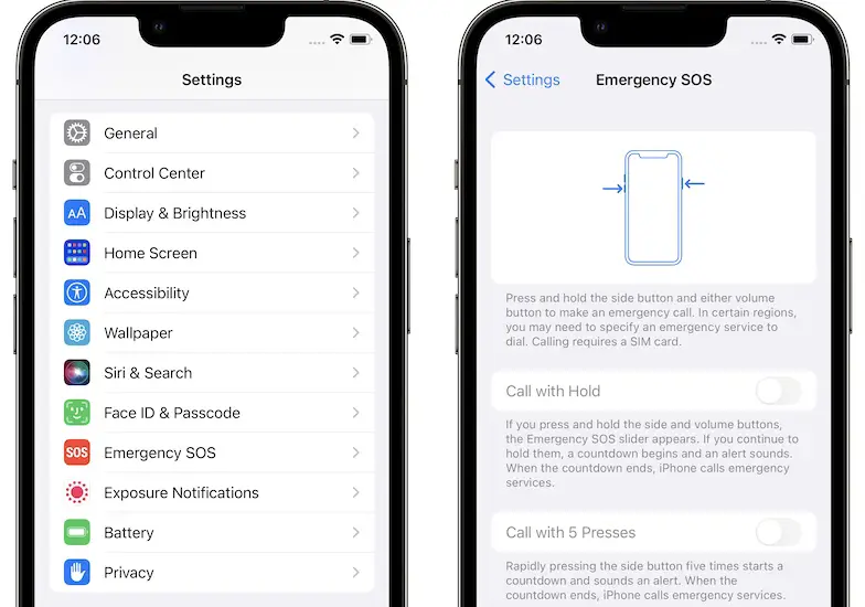 – Call with 5 Presses: The classic 5X Side Button clicking starts the Emergency SOS countdown. When it ends the iPhone calls your local emergency services.Fact: In iOS 15.2 the countdown is 8-seconds long, up from the prior 3-seconds. That’s been probably modified to avoid accidental 911 calls!