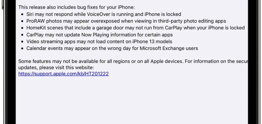 iOS 15.2 Bug Fixes