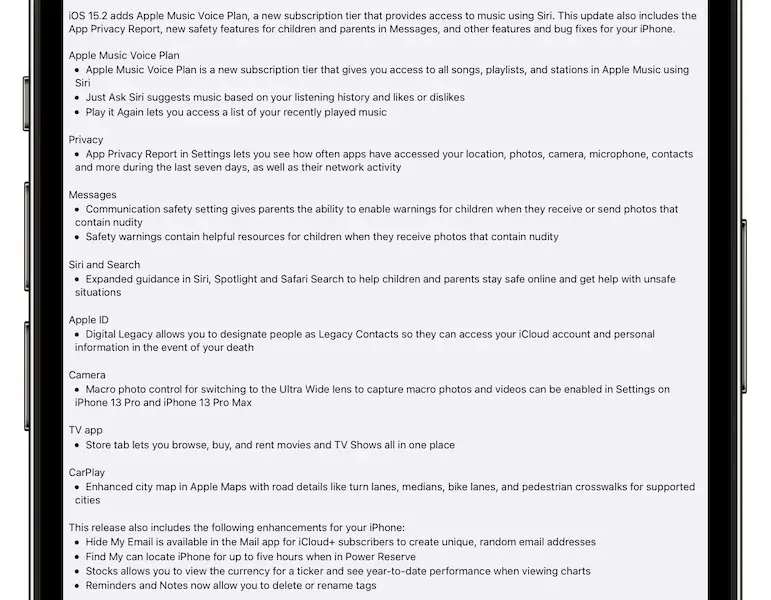 iOS 15.2 Release Notes
