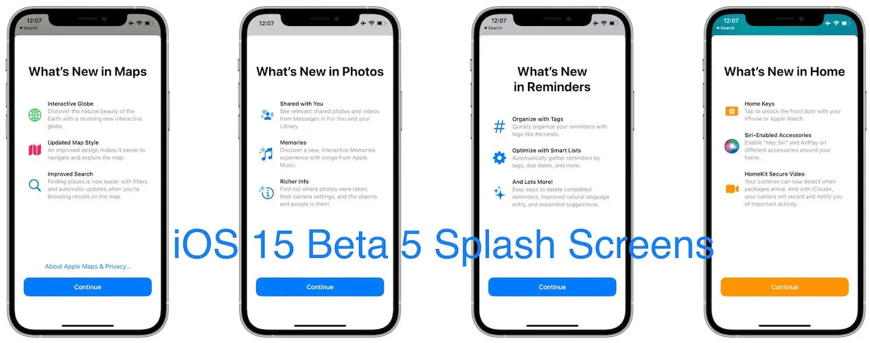 Stock iOS 15 apps greet you with new splash screen to highlight the new features. Some of these premiering in Beta 5 are: Maps, Photos, Reminders, Translate and Home. -