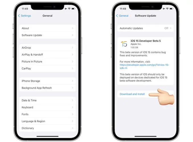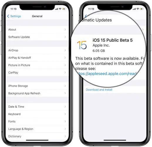 If your iPhone is already running an iOS 15 beta version and assuming that the iOS 15 Configuration Profile is still installed on your device, updating to iOS 15 Beta 5 is very easy.