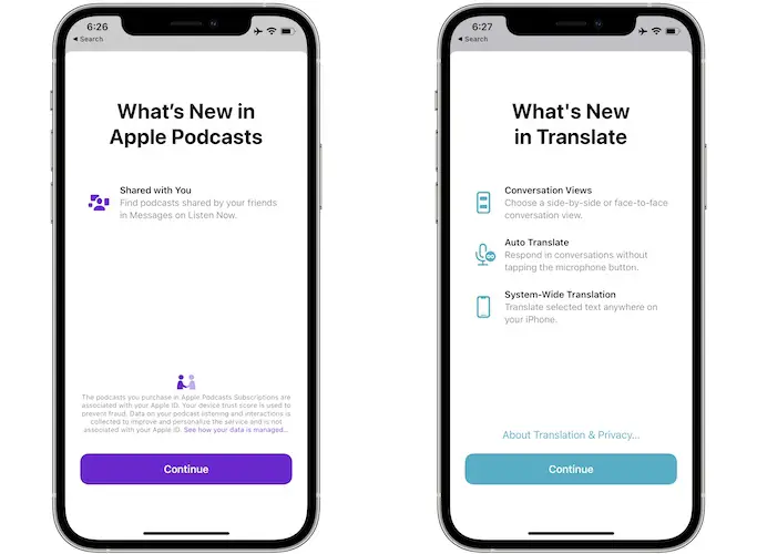 New Splash Screens for the Podcasts and Translate app can be spotted in this release.