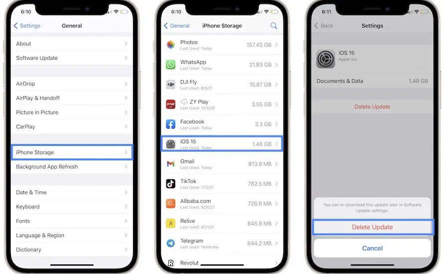 Workaround: A common fix requires you to delete the iOS 15 update file and start over. You can do this in Settings -> General -> iPhone Storage -> iOS 15 -> Delete Update.