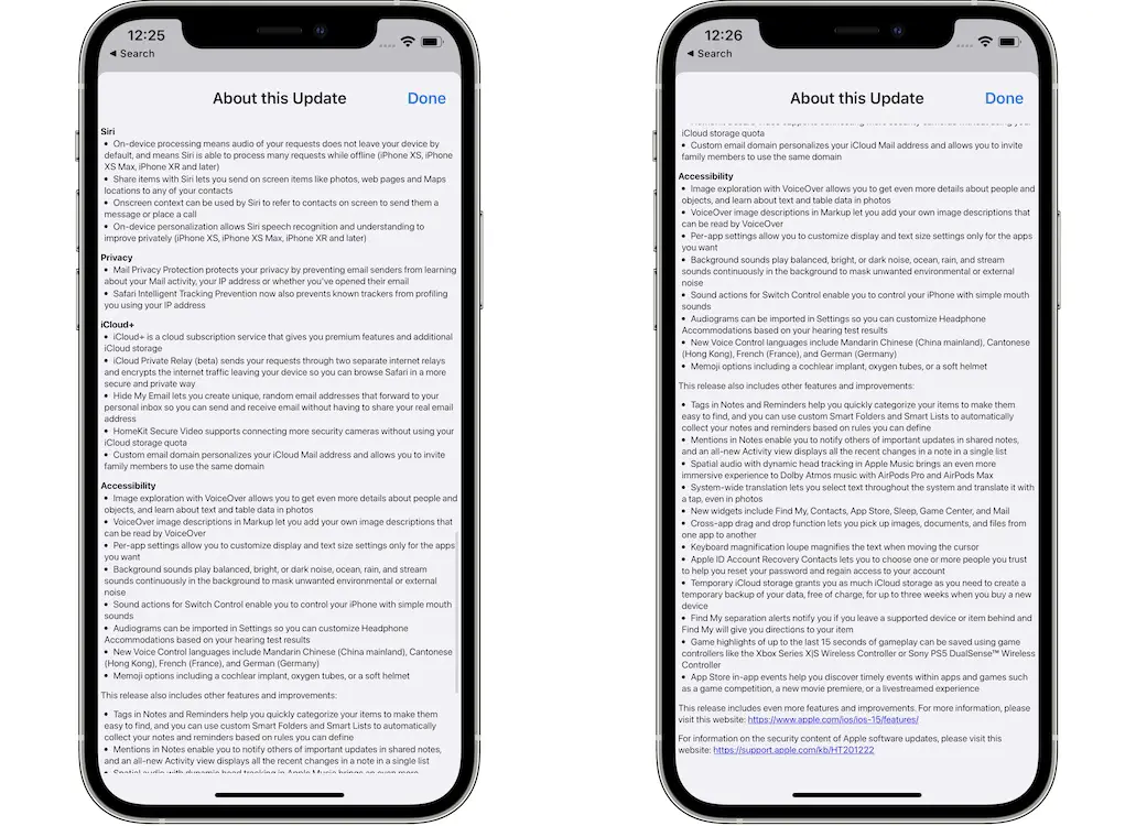 iOS 15 Update Log