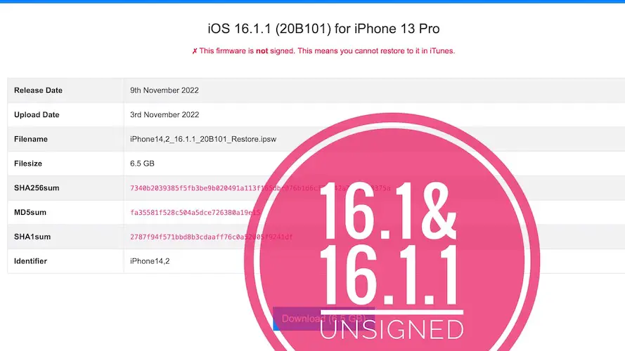 This change is confirmed on the ipsw.me website, as you can see in the above screenshot.