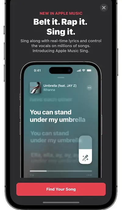 - 2. New Apple Music splash screen showcasing Apple Music Sing.
