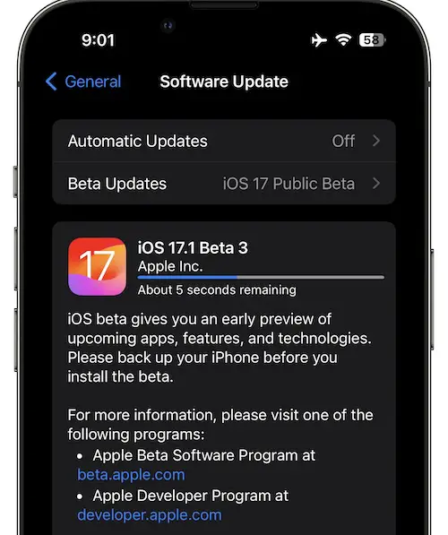 - 3. iOS 17.1 Beta 3 will show up on the Software Update screen.