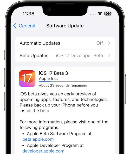 - 1. Open Settings -> General -> Software Update using an iPhone XS or later model.