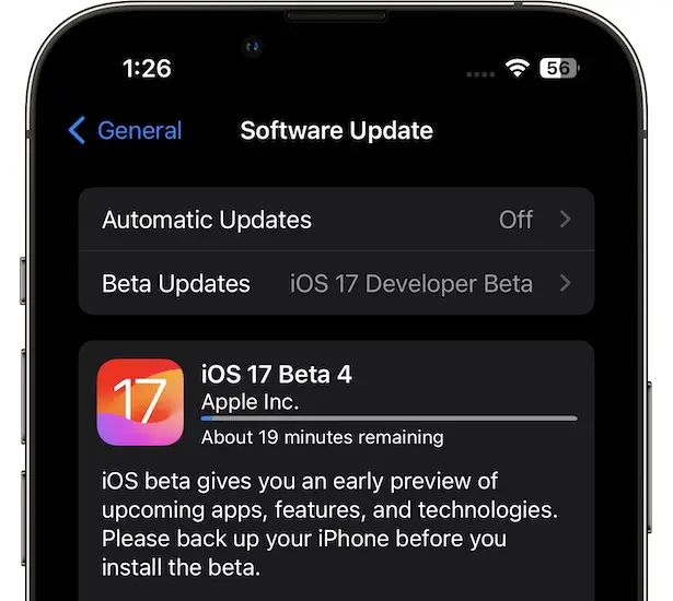 - 3. iOS 17 Developer Beta 4 or iOS 17 Public Beta 2 will show up on the Software Update screen. The two are identical!