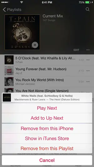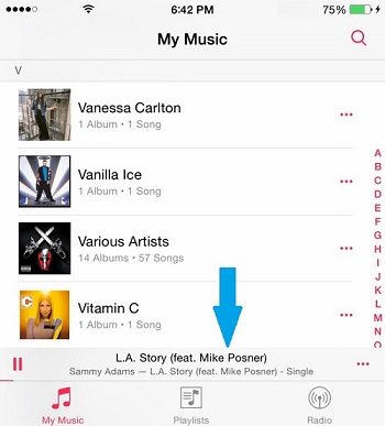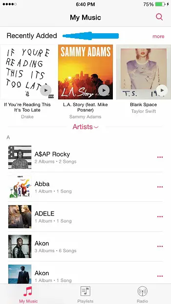 The bottom navigation footer accommodates now only three sections for a simplified experience: My Music, Playlists and Radio instead of Playlists, Artists, Songs, Albums and More. The iTunes Radio feature plays also an important role in the updated Music app. Discover fresh music and easily access recently played stations!