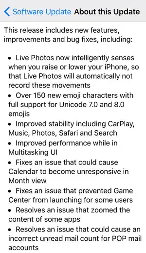Here you can check Apple’s complete update log for its public iOs 9.1 version: