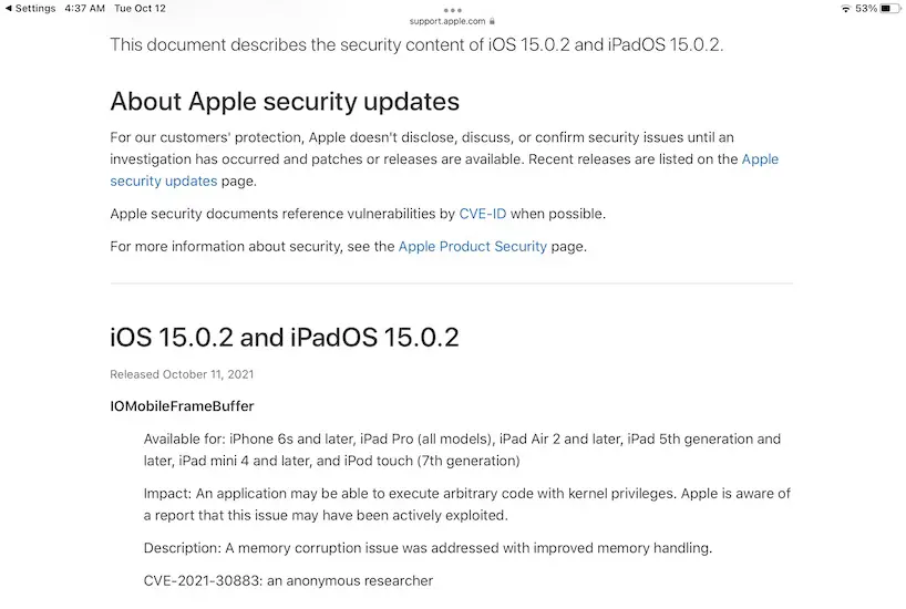 iPadOS 15.0.2 Bug Fixes