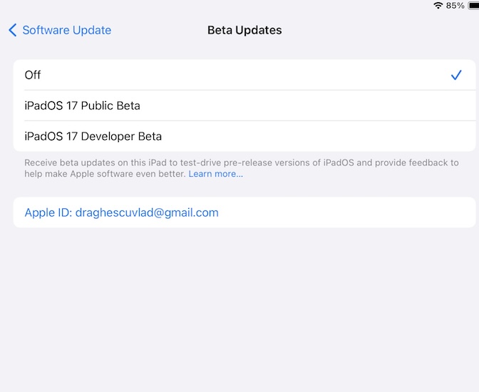 To update to iPadOS 17.1 Developer or Public Beta versions proceed as follows: