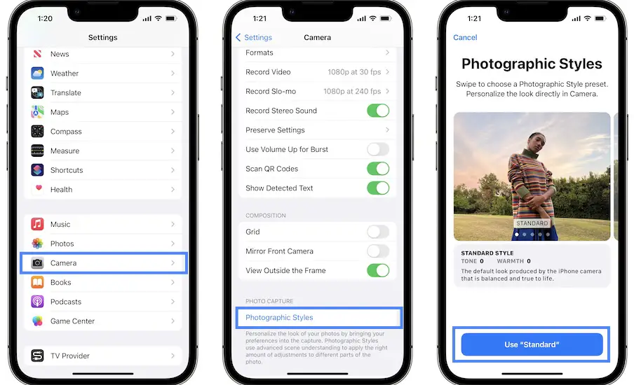 Photographic styles is an exclusive iPhone 13 & 13 Pro feature. It allows you to opt from one of five presets that automatically adds or decreases Tone and Warmth settings of a picture. All this is done post-processing.