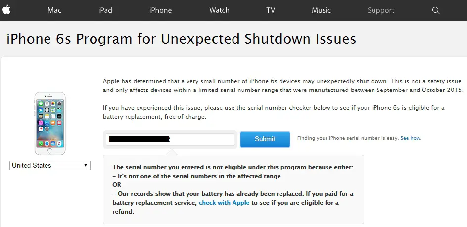 If your Apple smartphone suffers from unexpected shutdowns and its serial number has been flagged as eligible when you performed the serial number check described above, you have to contact the nearest Apple authorized service provider, an Apple Retail store or the Apple Technical Support to schedule a service session. Do note that your iPhone will be examined and has to be in working order to qualify for a replacement.
