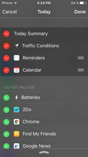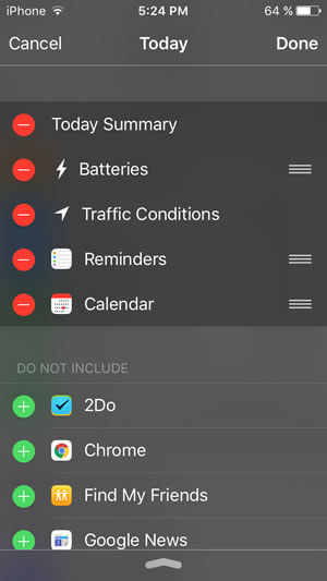 – To remove the module from the Today view, repeat the steps mentioned above and press the red icon with the “-“ symbol in the middle. Next, hit the unveiling Remove tag, to confirm your deletion.