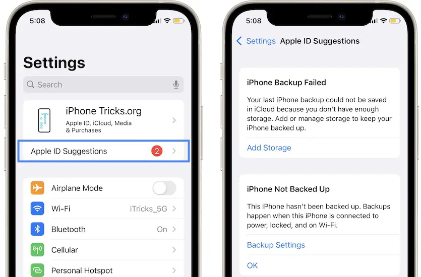 iPhone Not Backed Up Notification (Backup Failed Suggestion)