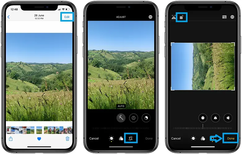 3. Tap on the crop/orientation toggle, available in the bottom edit menu.