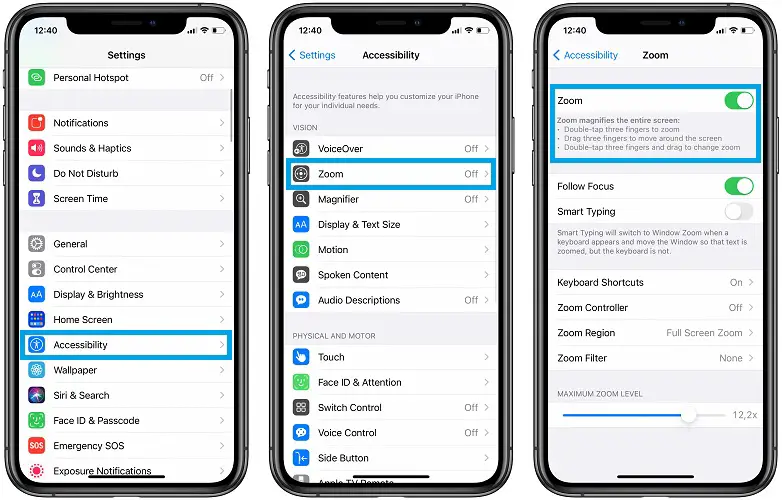Zoom: Double-tap the iPhone screen with three fingers to enable/disable system-wide zoom on your device.