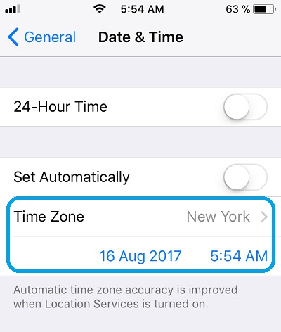 Set iPhone Time Zone Manually
