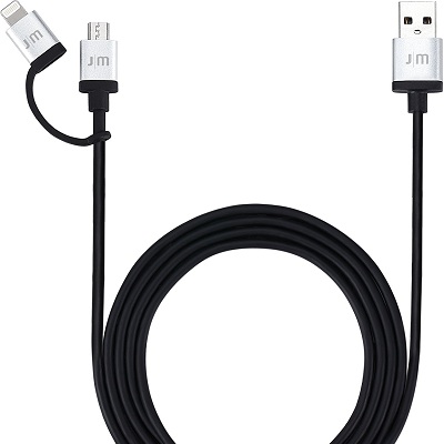 Along with the features mentioned above you have to know that this charging cord is aluminum made and is shielded for heavy-duty. It fits all micro-USB and Lightning devices including the iPod Touch and any other non-Apple smartphone or tablet. The duo connector cable can be attached to your original Apple or Samsung power adapter to charge your smart devices from the power outlet too and not only via USB, from a computer.