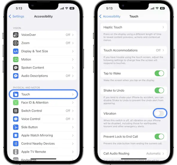 - Make sure that Vibration option is turned ON.