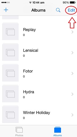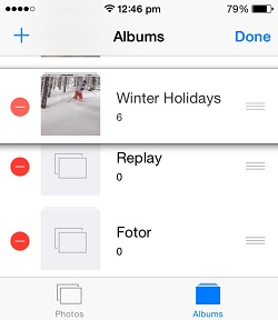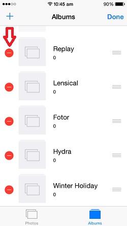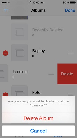 Folders can also be erased if needed. From the Albums screen, tap Edit in the top right corner and a red ‘-‘ icon becomes available next to the name of each folder. Hit and you’ll be prompted to confirm the action. Press ‘Delete’ and your folder is erased.