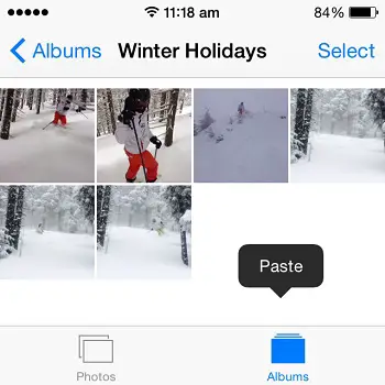 There is one more way to add pictures to an album. However, this method works with a single image at a time. Visit the Camera Roll and open the picture in question. Tap & hold on it until you enable the ‘Copy’ feature. Now, open the desired album and tap&hold the screen until ‘Paste’ command appears. Tap it and you’re done! Check the images below for more details.