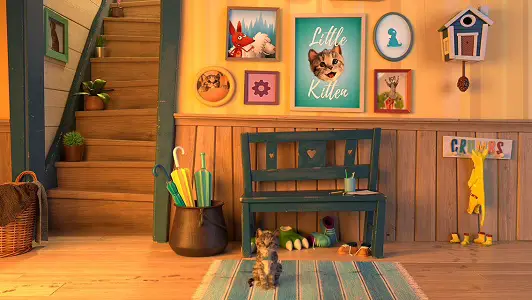 5. Feeding: Mini games bring food rewards. Use the earned snacks to feed your little kitten.