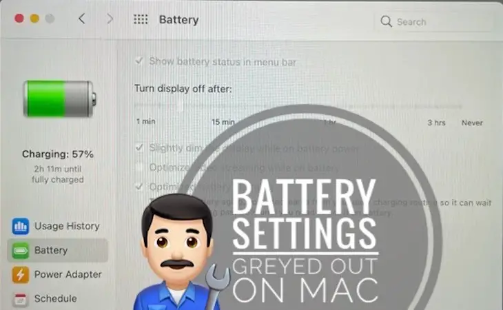 Are the Battery settings greyed out on Mac? Are you trying show the battery status in the menu bar, or to change how quick the display turns off but all MacBook battery settings are grayed out in macOS Monterey?