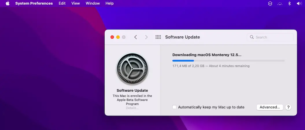 Updating to macOS Monterey 12.5 is available over-the-air as straightforward as usual: