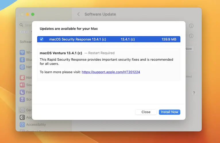 - 2. macOS Security Response 13.4.1 (c) should show up.