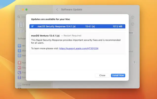 - 2. macOS Security Response 13.4.1 (a) should show up.