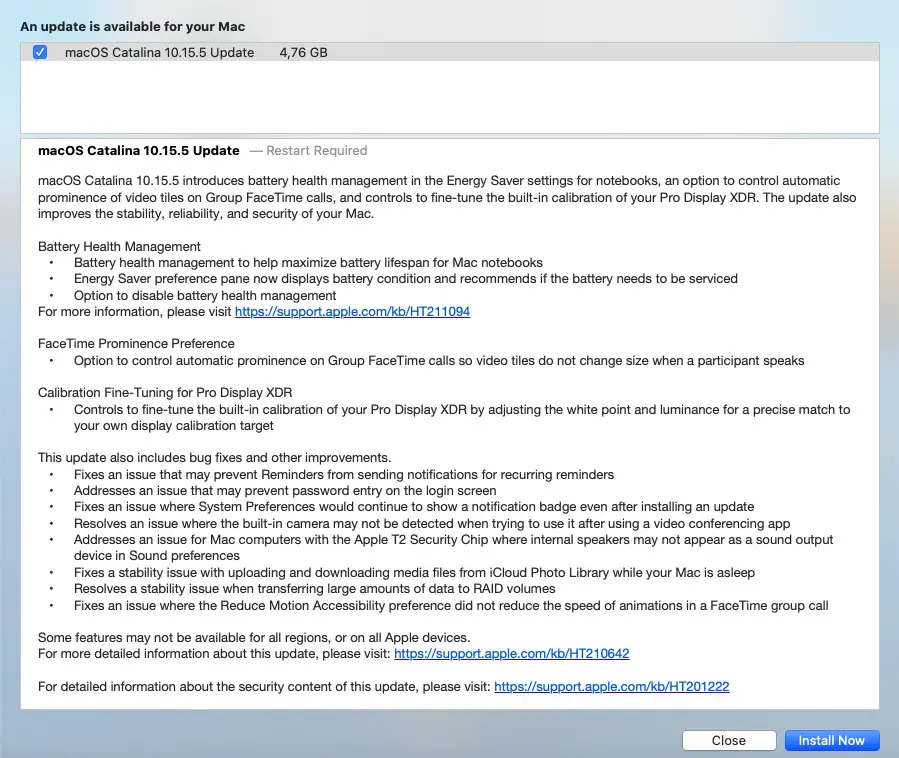 - Besides the new Battery Health Management feature announced at the beginning of this article, the update also includes a fix for a bug that was causing the Finder app to freeze during large data transfers to RAID volumes. This problem surfaced after the release of macOS 10.15.4.