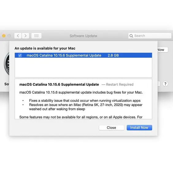 “macOS Catalina 10.15.6 supplemental update includes bug fixes for your Mac.