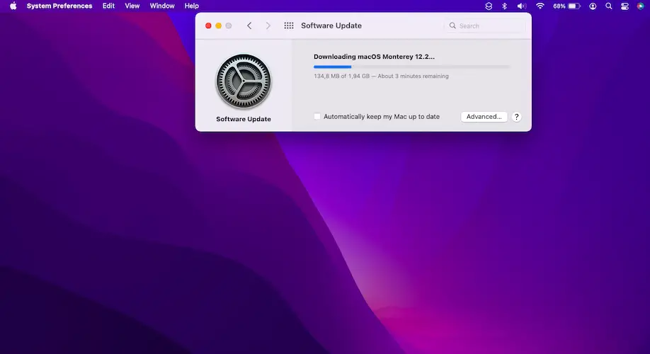 Agree with Apple’s terms and be patient until macOS 12.2 is downloaded on your Mac.