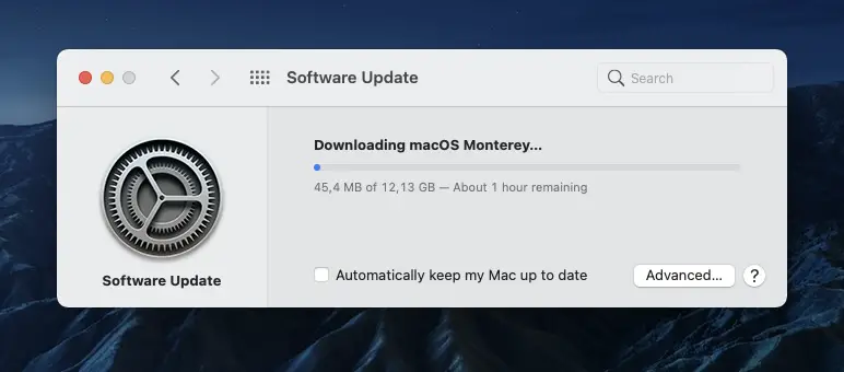 Fact: The macOS Monterey update file is 12.13 GB in size but you need a total of around 45 GB of free space on your Mac to be able to install macOS 12.0.1!