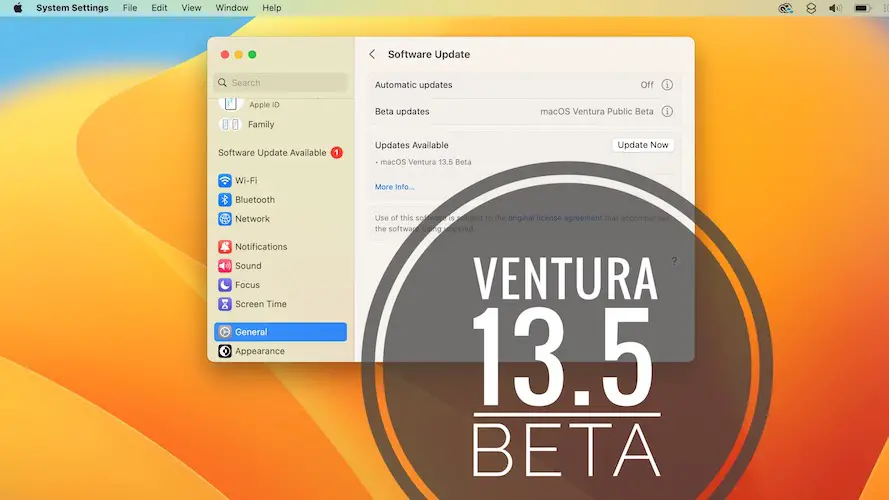 New: turn on Beta updates in the Software Update screen to be able to download macOS Ventura 13.5 beta!