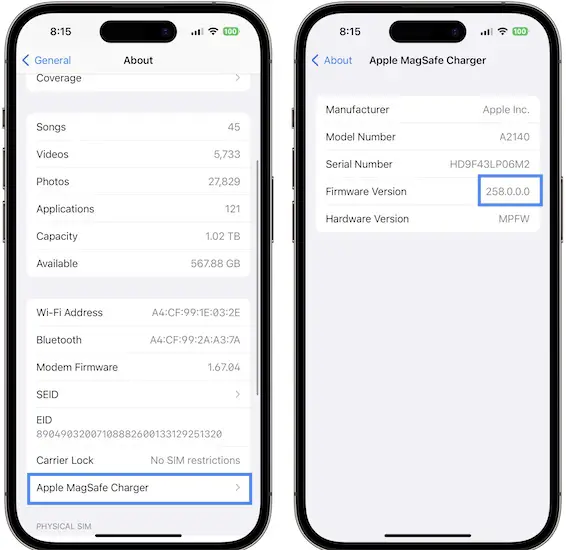 Fact: If you see 258.0.0.0 it’s running the most recent version. If you see 255.0.0.0, 247.0.0.0, 174.0.0.0 or 171.0.0.0 it means that your MagSafe charger is running an older firmware version.