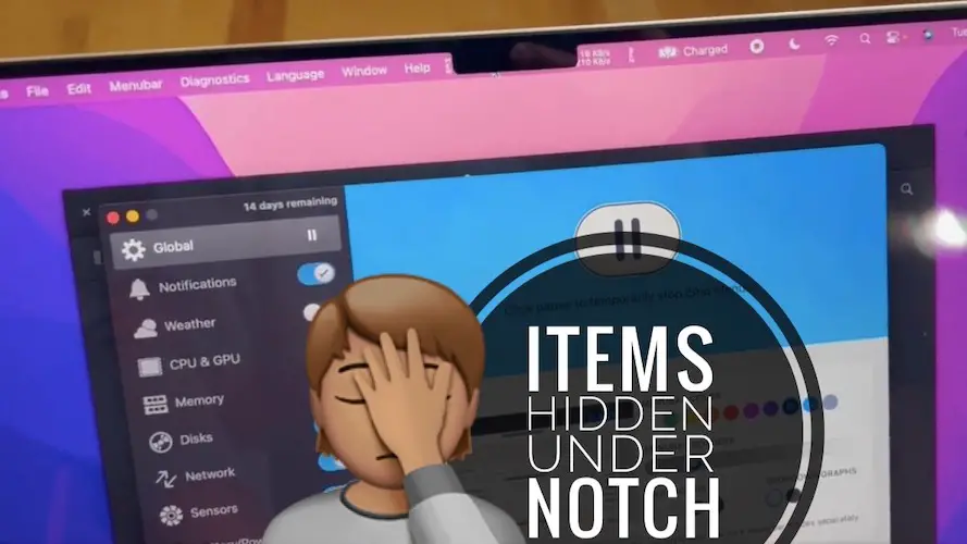 Are menu bar items of third-party apps hiding behind the MacBook Pro notch? This is an ongoing issue with apps that haven’t been updated with support for the new 2021 MacBook Pro M1 devices. Software that use a lot of menu items might end up with some of them concealed behind the notch!