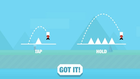 2. Perfect Taps: To make your life easier tap the screen, using your main hand. That the left for lefties and right for righties. The location of your tap is also important, try to press somewhere in the lower part of the screen, so that you don’t diminish your view on the upcoming obstacles. The intensity of the tap shouldn’t be to high either, because if you press hard, you need more time to lift your finger and tap again, which could prove fatal for Mr Jump!