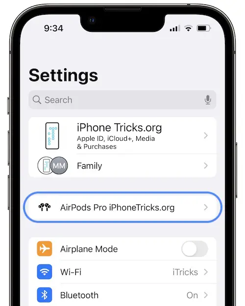 AirPods Settings on iPhone and iPad are much easier to access in iOS 16. A distinct AirPods menu becomes available at the top of the Settings home screen. It provides quick customization for AirPods features and setup.