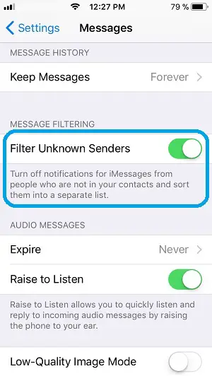 How To: Settings -> Messages -> Filter Unknown Senders.