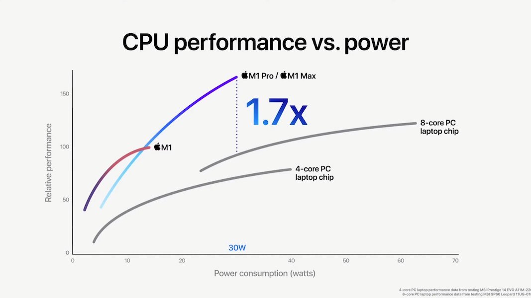 M1 Pro vs M1 Max vs Other Chips CPU Performance vs Power Graph