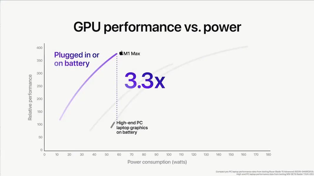 M1 Max vs Other Chips GPU Performance vs Power Graph