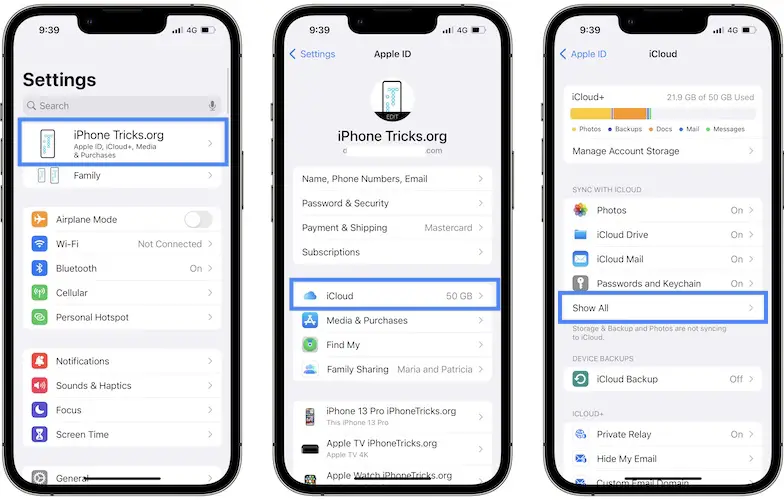 - Go for Show All in the SYNC WITH ICLOUD section.
