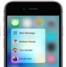 1. Peek: If you press lightly on an app icon, or on a specific item within an app (for example message conversation thread) a small pop-up appears, displaying a sneak peek of the content, additional functions or commands for that certain application.