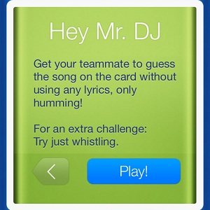 For example, Let’s pick the Hey Mr. DJ deck. Your teammates will have to guess the song displayed on each card. However, you’re not allowed to mention the lyrics, only humming is your trick. The increase difficulty trick, for this deck, is to forget humming and make your friends guess by just whistling. when everyone ready, tap Play, place your iPhone on your forehead and start guessing.