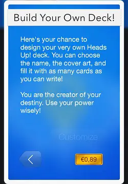 If you need more decks you need to opt for an in-app purchase. You’ll have the option to build your own cards or download special packs already available. Some of the most sought of are: RED (a fund raising deck for RED anti-AIDS campaign), Adult Supervision, Bad Behavior, That’s So 90s, Sports Legends, Wish You Where Here, As Seen On TV and many more.