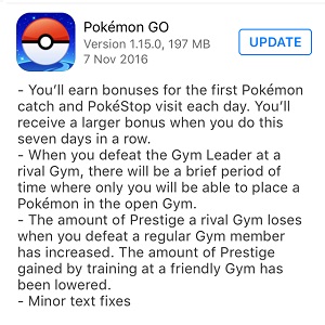 Pokemon GO Gets Daily First Catch Bonuses, Prioritized Gym Placing & Quicker Gym Prestige Meltdown